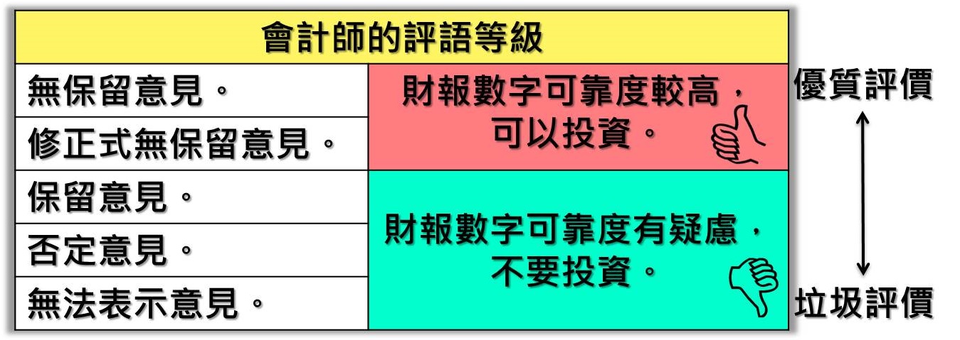 會計師評語可分成以下幾個等級,