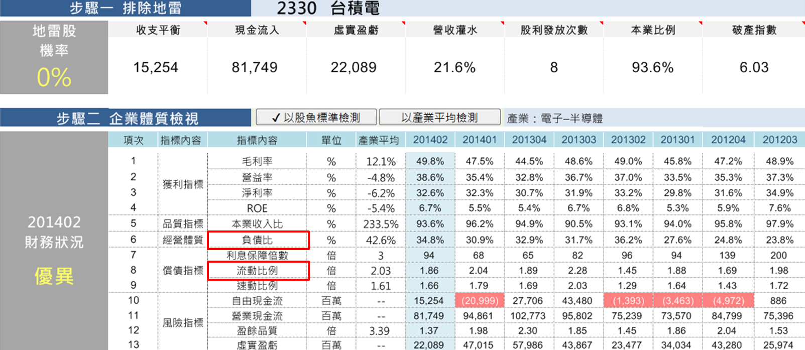 就表示這檔股票的財務狀況是優質、可靠的。
