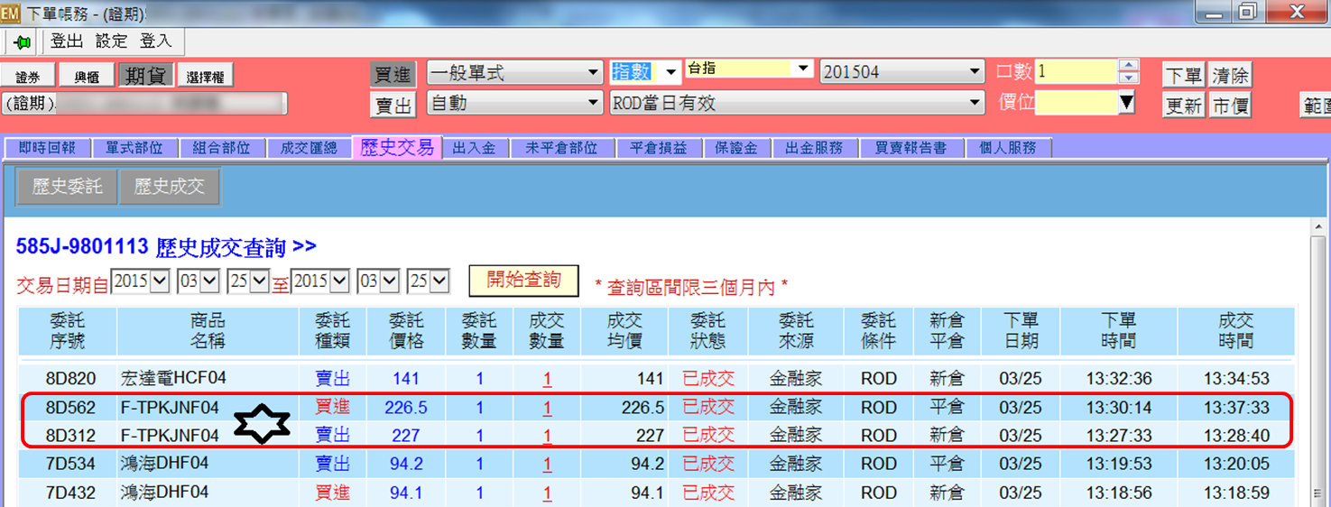 225.5 成交 約10口 我掛的單未成交