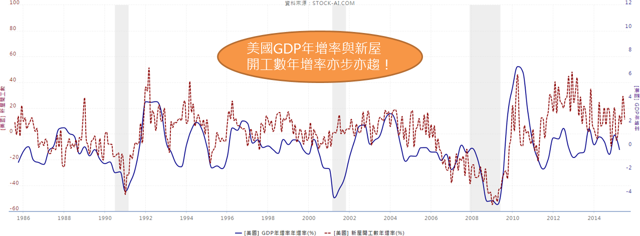 美國 GDP 年增率與新屋開工數年增率根本是亦步亦趨!