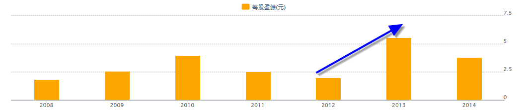 2013 年的 EPS 明顯成長很多,還創新高!( 達 5.55 元 )