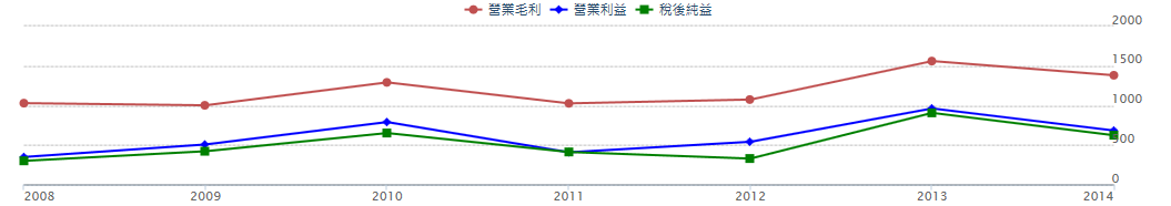 2009~2014 年,橋樁的年營收逐年上升!
