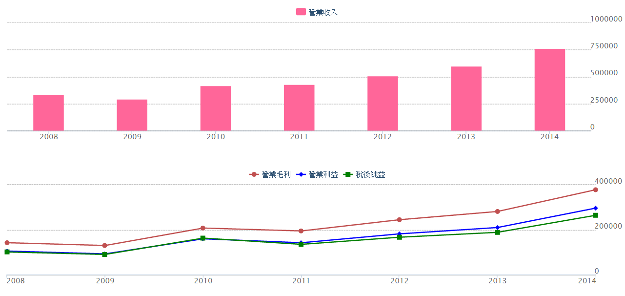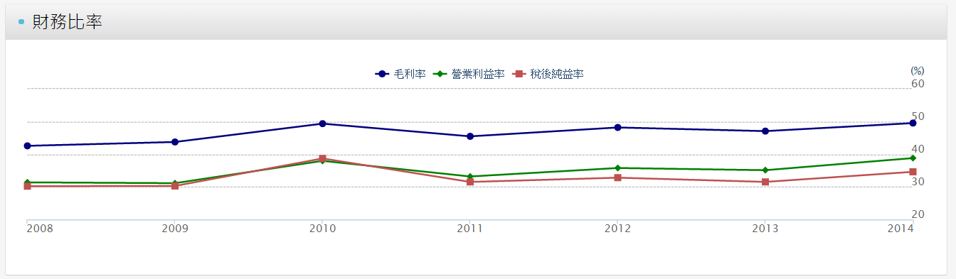 2014 年毛利率 49.6% 、成長 34.43%,