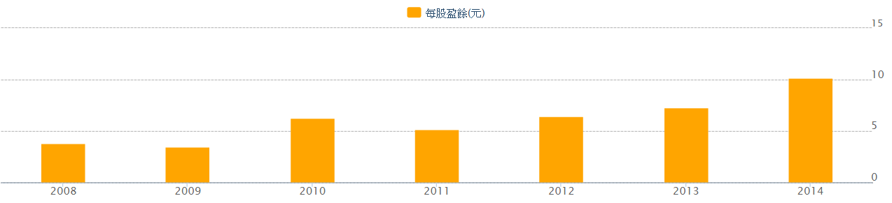 以 2014 年每股盈餘 10.18 元來看,