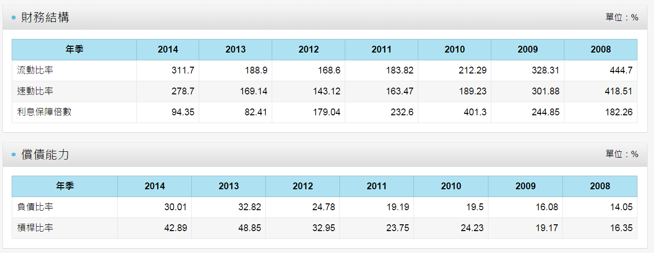台積電 2014 年負債比率達 30.01 %,