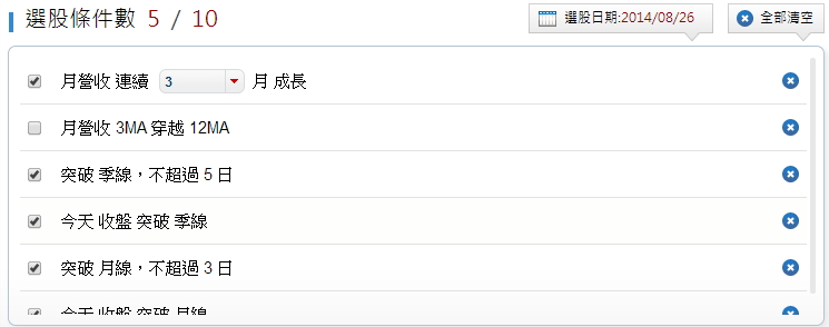只要輕輕一點,這些就會成為選股條件之一。