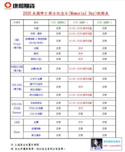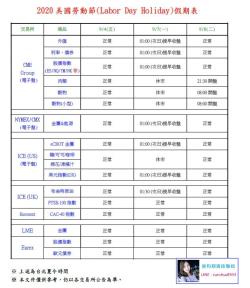 2020美國勞動節(Labor Day Holiday)交易時間異動表