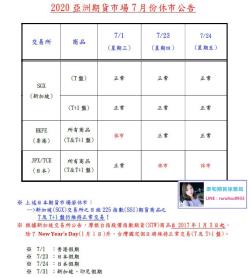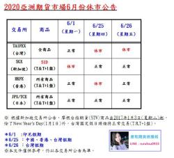 亞洲期貨市場6月份休市公告