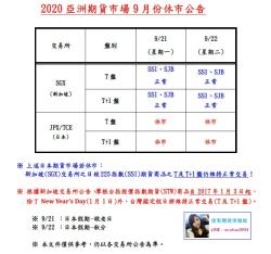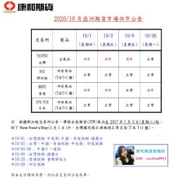 2020/10月亞洲期貨市場休市公告