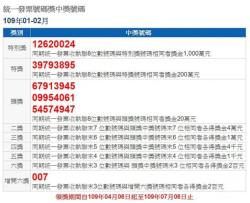 109年1、2月期統一發票中獎號碼