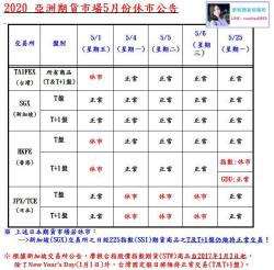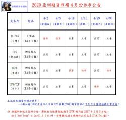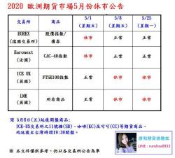 2020亞洲期貨市場5月份休市公告