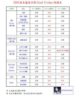 4/13(一):ICE 部分商品延後開盤、休市 / 歐盤休市