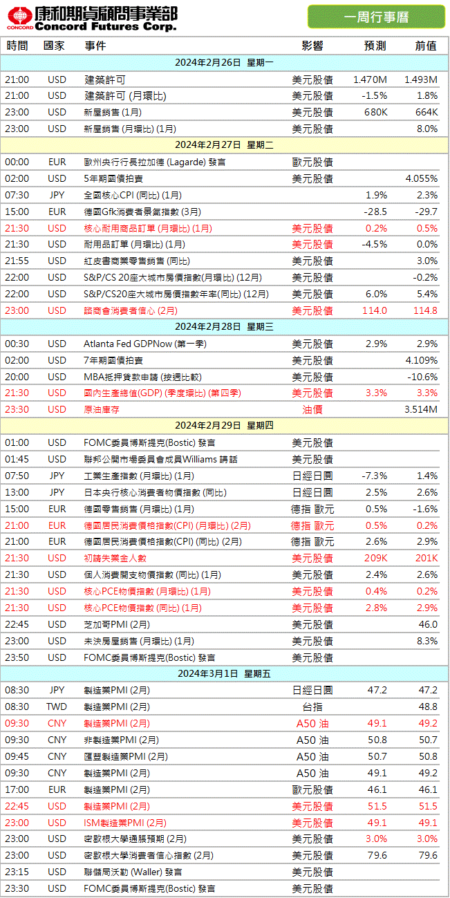 臺灣期貨交易所於113年3月6日公告調整臺股期貨契約(TX)、小型臺指期貨契約(MTX)、客製化小型臺指期貨契約(MXFFX)、非金電期貨契約(XIF)、臺灣永續期貨契約(E4F)、臺灣生技期貨契約(BTF)、航運期貨契約(SHF)、美國道瓊期貨契約(UDF)、美國費城半導體期貨契約(SXF)、布蘭