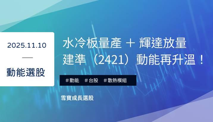 繼續閱讀...建準(2421)水冷布局啟動,AI 散熱升級賽道建準(2421)於近期法說會中指出,受惠AI伺服器需求帶動,除風扇產品外,明年第一季就可量產水冷板,CDU(冷卻液分配裝置)、風扇牆等也如期推進,正向看水冷領域發展,吸引資金積極卡位。 今(11/10)盤中股價強勢上攻,走勢領漲同族群,充分反映伺服器散