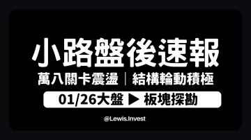 繼續閱讀...【01/26小路盤後速覽】萬八關卡持續震盪,市場輪動持續積極!結構轉強對個股交易者更加友善✌