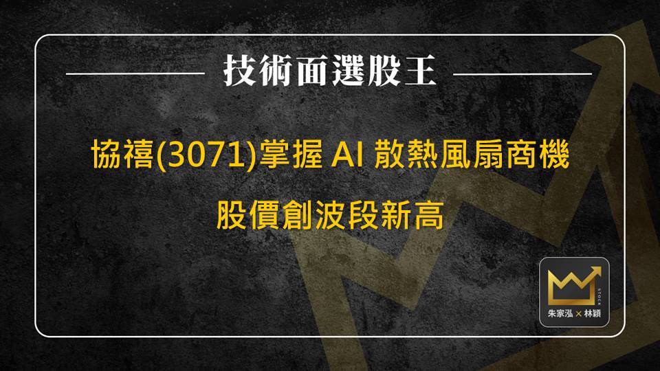 協禧(3071)跨入 AI 伺服器供應鏈,持續掌握風扇散熱商機根據市調機構 TrendForce 預估,隨著 Nvidia 推出新一代 Rubin 平台,單一晶片熱設計功耗(TDP)從過往 1,000 瓦以下大幅提升至 1,400 瓦,散熱技術將全面改為液冷散熱,且規格也同步升級,帶動相關供應鏈如奇