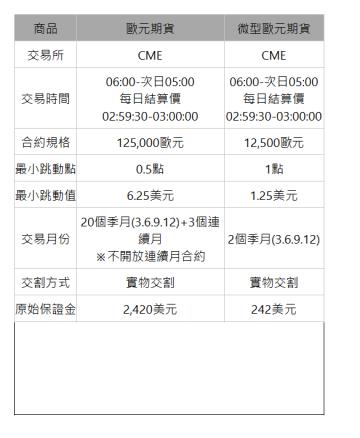 微型歐元期貨保證金只需要歐元期貨保證金的十分之一唷,算是相當容易入門的海外期貨商品!!