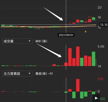 可以看到2021/09/02成交量開始放大,