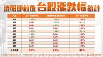 從去年回推過去10年的清明節台股表現,以清明連