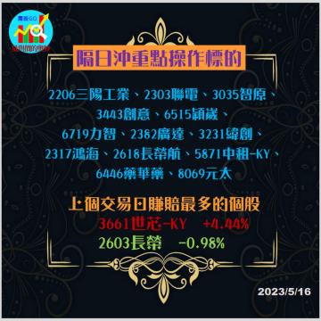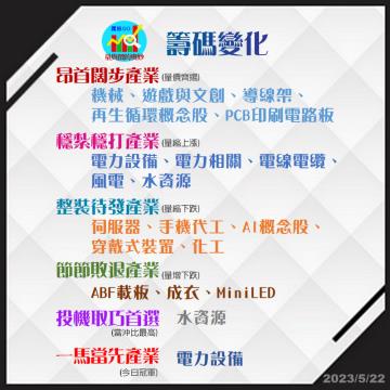 20230523台指期赤道線(期貨)分析/股票通關密碼/籌碼變化前十類股/各類股籌碼與漲跌 (露股go)