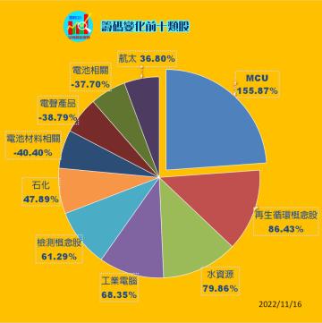 繼續閱讀...20221117股票通關密碼/籌碼變化前十類股/各類股籌碼與漲跌 (露股go)