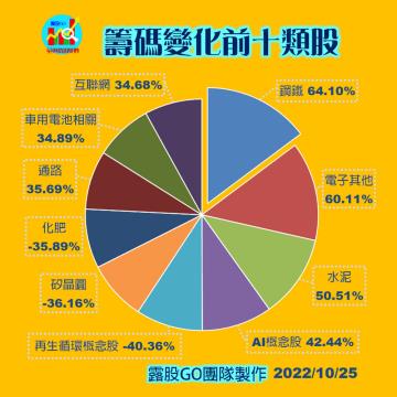 20221031台指期赤道線(期貨)分析/股票通關密碼/籌碼變化前十類股/各類股籌碼與漲跌 (露股go)
