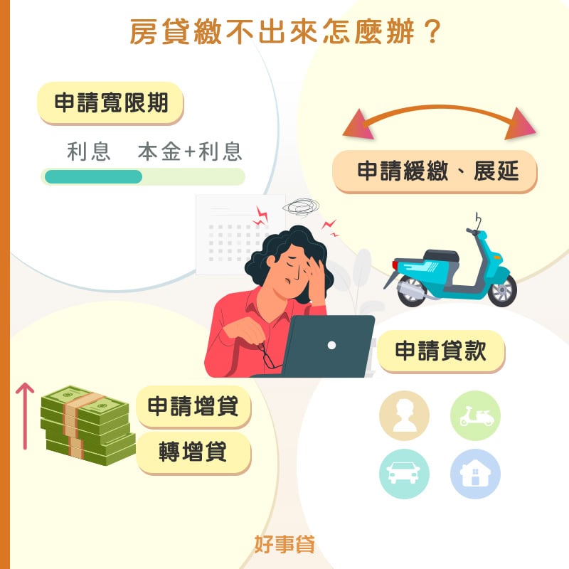 房貸繳不出來怎麼辦?4招幫你減輕還款壓力房貸繳一半,不幸遇到公司減薪、放無薪假、甚至裁員,收入銳減導致生計出問題...但房貸還是得按時還款,壓力好大該怎麼辦?如果真的不得已房貸遲繳、甚至沒繳的後果會怎麼樣?房貸繳不出來,銀行會體諒嗎?本篇提供你四種度過房貸繳不出來的方法。