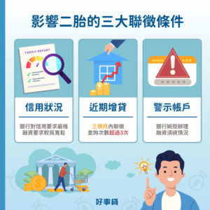 繼續閱讀...二胎房貸申請條件大彙整!5分鐘掌握房屋二胎條件與限制二胎房貸好申請嗎?申請二胎房貸,需要具備哪些條件?其實不同申貸管道,二胎房貸條件也會不太一樣。有些管道條件限制很嚴格,有些則較寬鬆。本文整理了所有管道,對於二胎房貸申請的條件與限制,幫你省下申貸前評估與比較的時間,可以更快找到適合自己的二胎房貸方案
