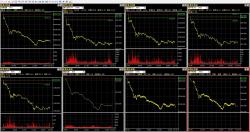 繼續閱讀...以下這兩張,一張是國際指數的價量走勢圖,一張是期貨與現貨走勢圖,第二張圖可發現,今日幾乎全世界都在跌,韓國跌1.1%,日本跌3.1%,更恐怖的是橫生跌了5%以上,而大陸股市跌得更慘,深圳跌了2.8%,上海更跌了6.7%,今日的股災日到目前為止還不清楚原因,而我們的加權指數今日已跌破所有的支撐,下一個