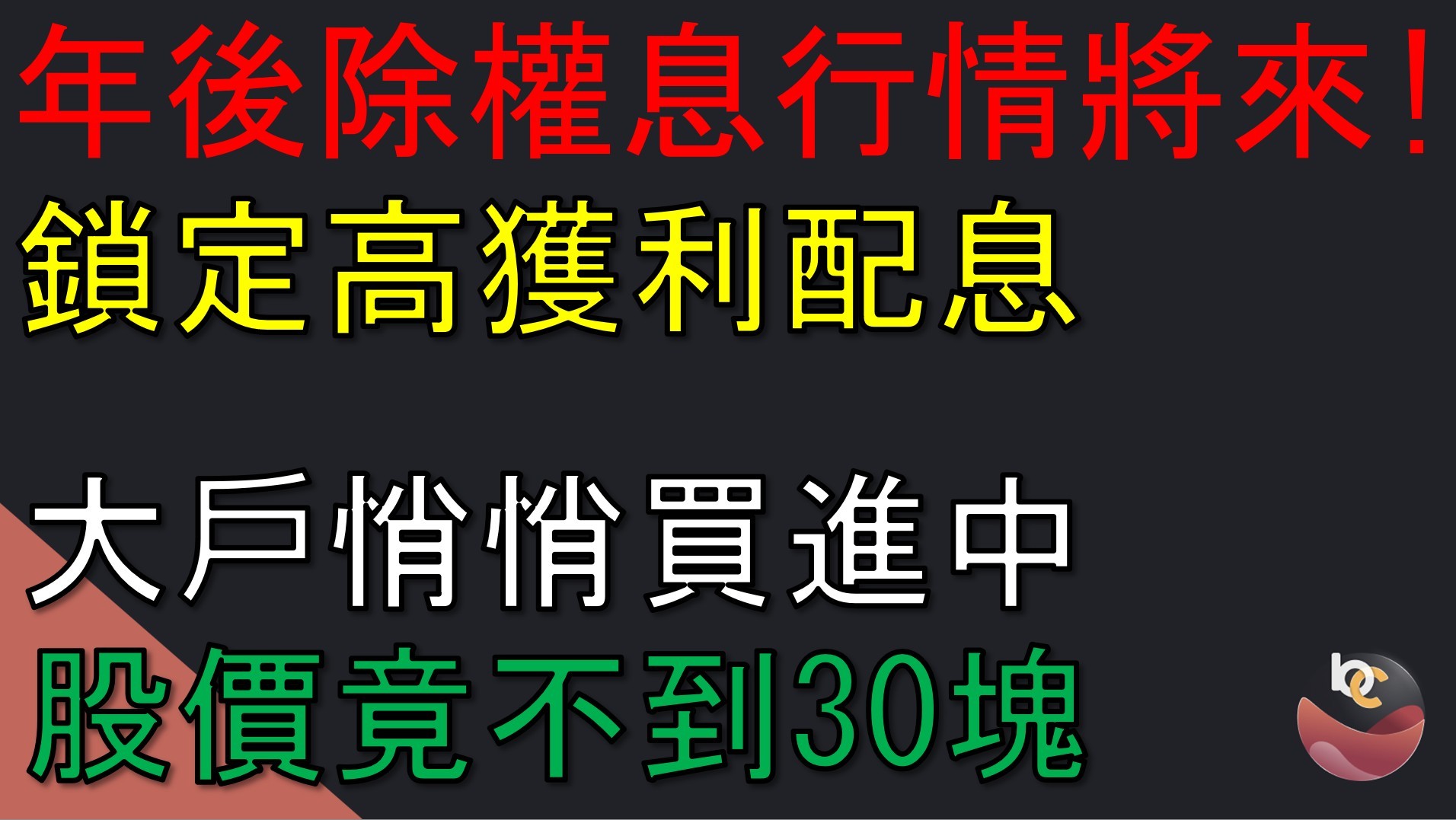 我是一名多重身分斜槓者,本業從事科技產業,是一名投資近 20 年的資深投資人,並同步經營Youtube個人頻道《BC股倉》,專門分享自身價值投資經驗給大家。 我的核心投資策略以長期波段存股及資產風險配置為主軸,透過夏普值、Beta值和殖利率等指標組成選股策略,搭配出低風險高報酬的投資組合,主要持股部位以績優科技成長股、金融股、營建股、傳產股,架構不同族群配置自組成BC股倉ETF組合,目標是勝過0050及0056。