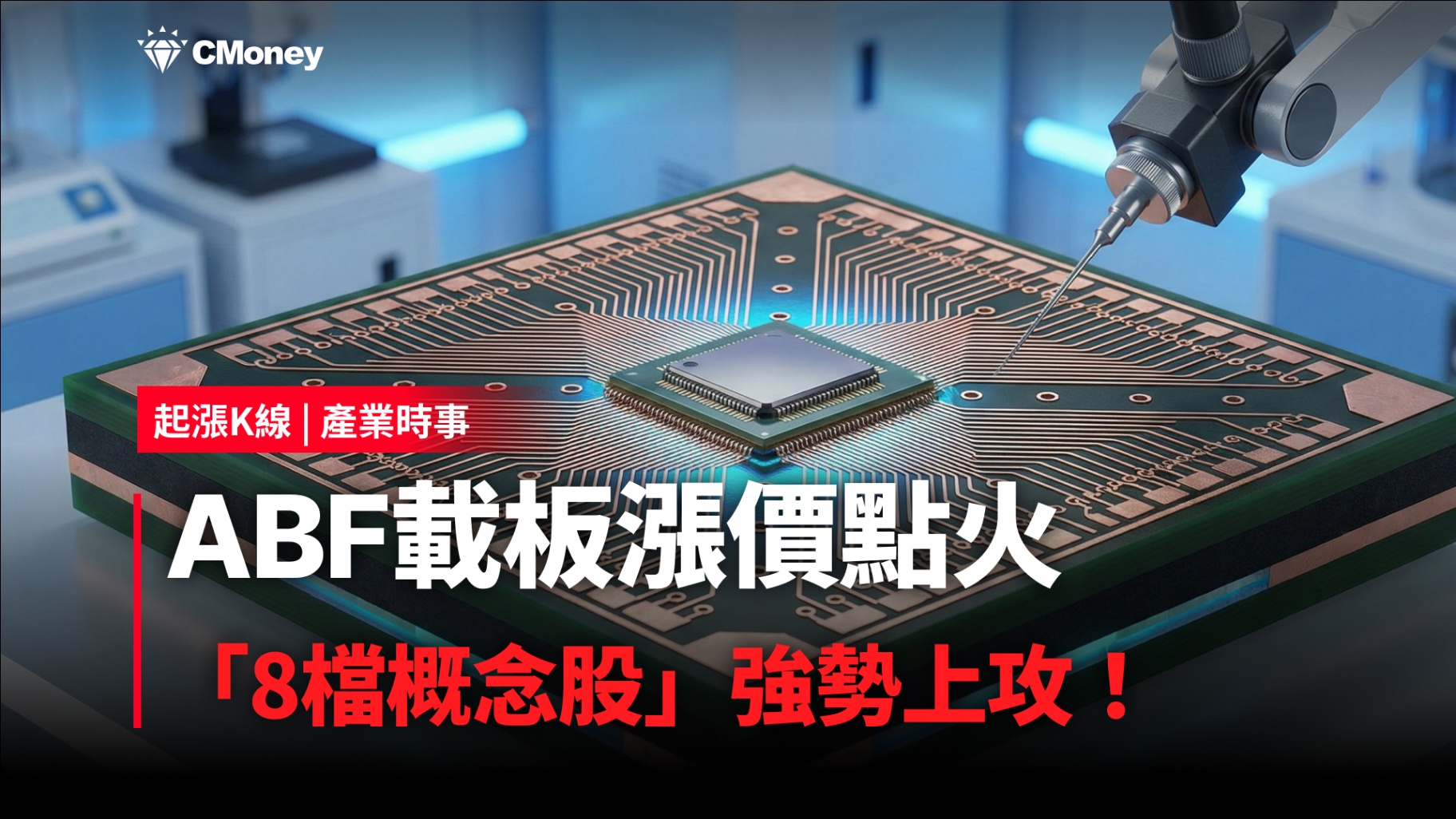 1月 2026年16 【最新消息】ABF載板漲價點火,「8檔概念股」強勢上攻! 最後更新於  2026.1.16 15:50 瀏覽人次 : 39545 撰文者: CMoney官方 標籤:起漲K線APP, 起漲K線最新消息, 產業, 產業時事, 載板, ABF 收藏 台股在台積電昨天法說會的激勵下,成功突破31000點大關,終場收在31408.7點,上漲598.12點或1.94%,觀察盤面表現,以載板族群的走勢最為亮眼,在市場利多消息的帶動下,多檔個股強勢大漲。《起漲K線》今天帶你來觀察產業的最新消息,同時找出具備上漲動能的強勢股!「下載起漲K線,接收最新消息」 繼續閱讀...