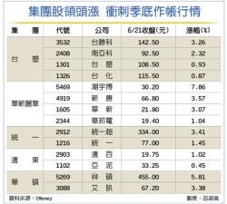 集團股股東會旺季接棒,統一、華新麗華、台塑、遠東等傳產集團股搭高殖利率、營收獲利成長等題材,股價紛紛大漲或寫歷史新高,華碩等電子集團股也零星表態,蓄勢衝刺季底作帳行情,為台股增添多頭柴火。