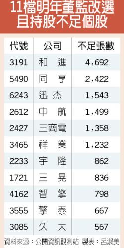 董監持股不足 留意11檔改選股